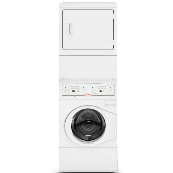Speed Queen commercial stack washers and dryers are vertical commercial laundry equipment combinations that provide all of the power of individual Speed Queen commercial washers and dryers while occupying only half of your laundry room's floor space. Stackable units also allow you to utilize the same laundry connections and hook-ups required by standard washing machines and dryers, so you won't have to make changes to your installation. Coin-O-Matic has the best selection of Speed Queen Commercial Stack Washers and Dryers for sale, in stock and ready to ship! Contact our team of multi-housing laundry specialists with any questions.